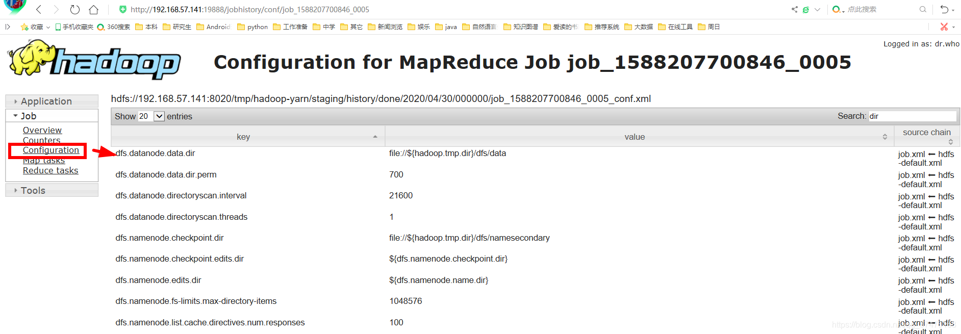 5、进入oozie-apps/map-reduce目录,修改job.properties文件