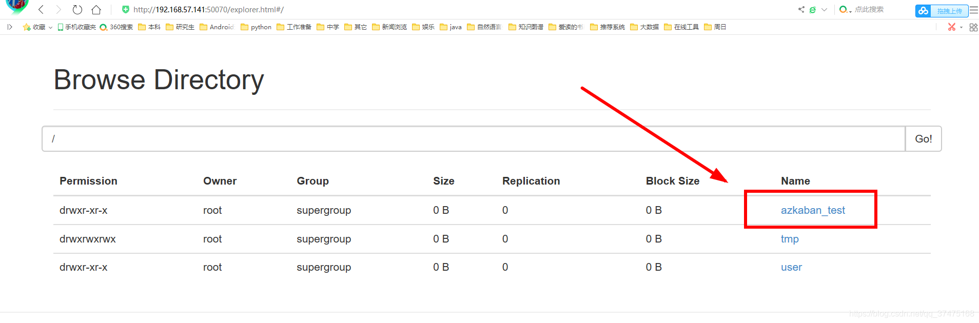 在hdfs的web界面中浏览文件系统,如下所示