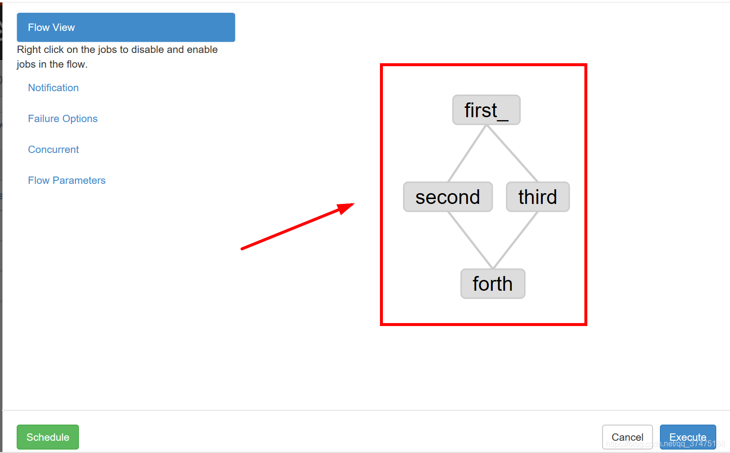 1、创建四个job文件:first_,second,third,forth,其中第二三个依赖第一个,第四个依赖第二三个,可以写出作业文件如下