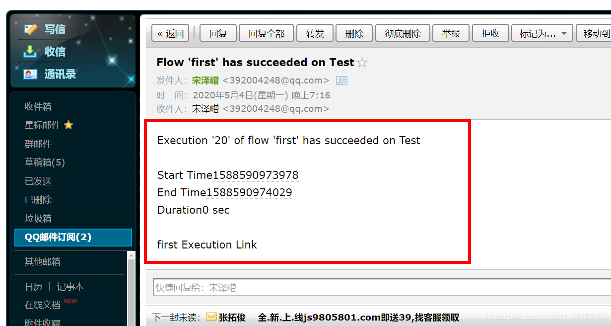 这样执行完成后,我们就能收到结果邮件了