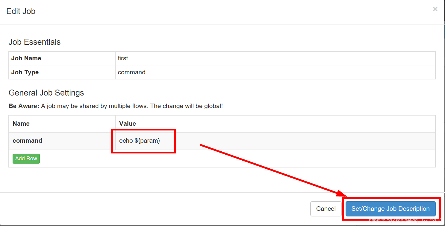 3、点击修改command的值,换成echo ${params},里面的$表示引用,params为要引用的参数。然后点击改变任务描述即可