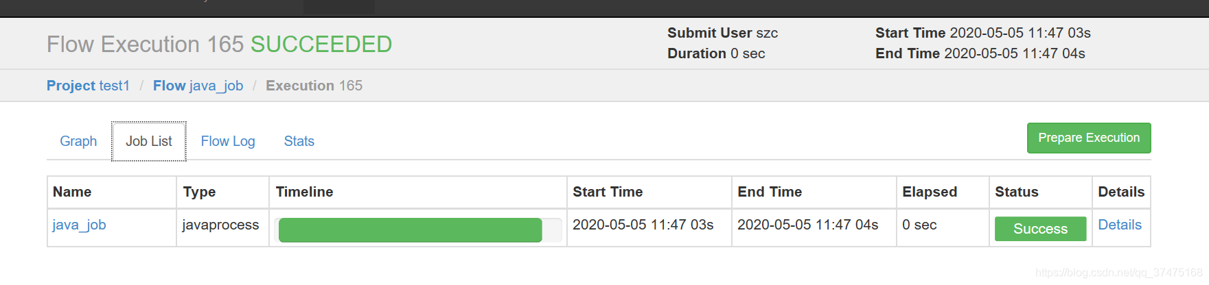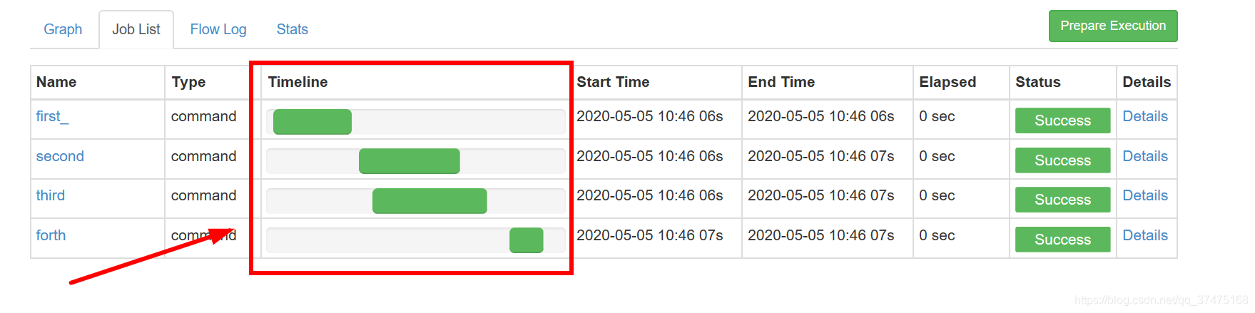 3、完成后,查看Job List中的时间线,如下所示