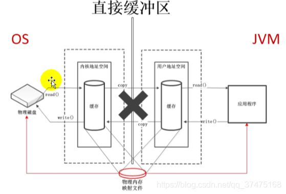 如果使用直接内存,就不会用用户态内核态相互复制的过程,将会写到物理内存映射文件,直接写入物理磁盘上。