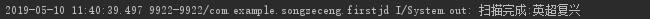 System.out.println("扫描完成:" + s);