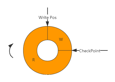 Write Pos和CheckPoint之间还空着的部分,可以用来记录新的操作。如果Write Pos追上CheckPoint,表示写满,这时候不能再执行新的更新,会停下来先擦掉一些记录。如图:W区则是可以写入的区域,R区则是需要刷盘的内容。