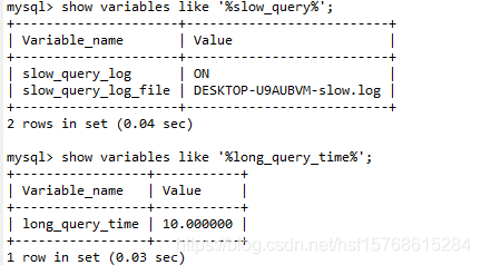 记录所有执行时间超时的查询SQL,默认是10秒,方便于查询缓慢的定位和分析。可以通过show variables like '%slow_query%'查看是否开启和日志的位置,show variables like '%long_query_time%'查看慢查询的阈值。