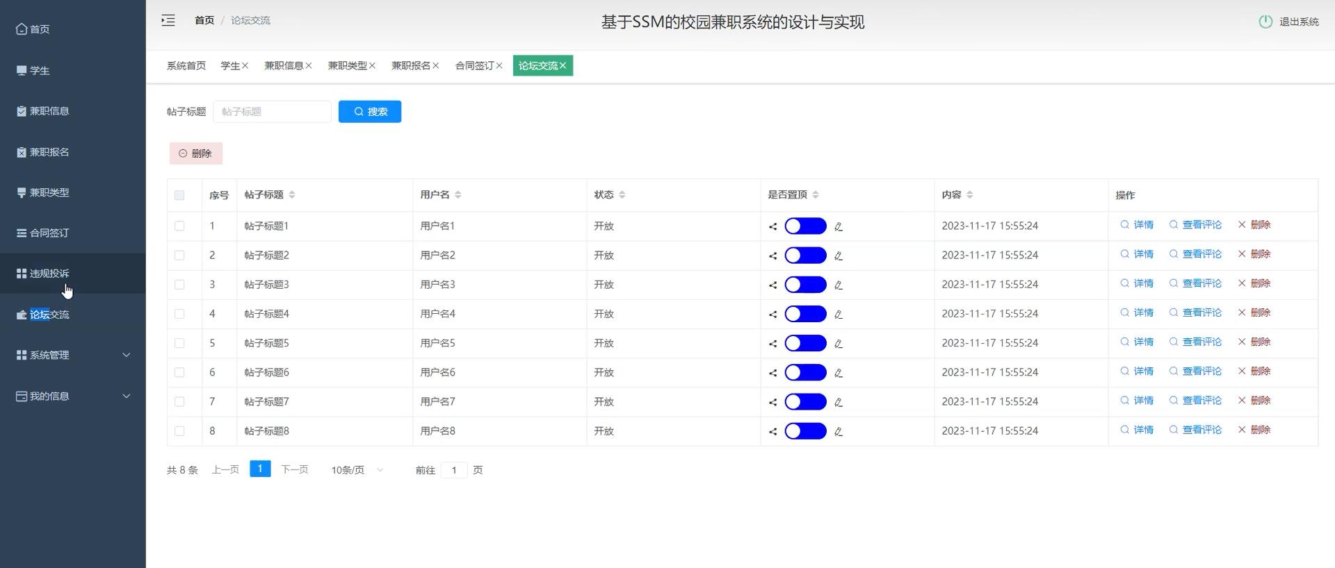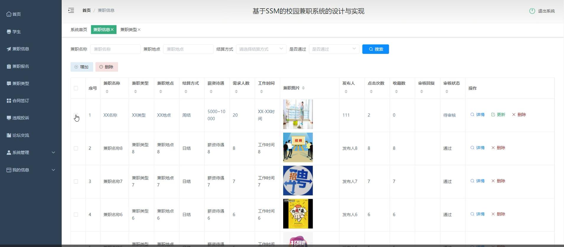 兼职信息管理功能:实现管理员对兼职信息进行审核、删除等操作的功能。
