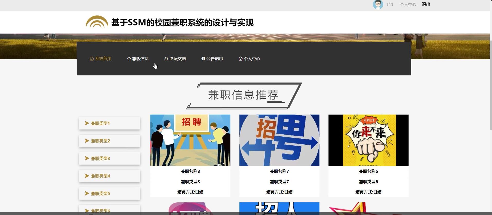 关键词:校园兼职;SSM框架;系统设计;信息发布