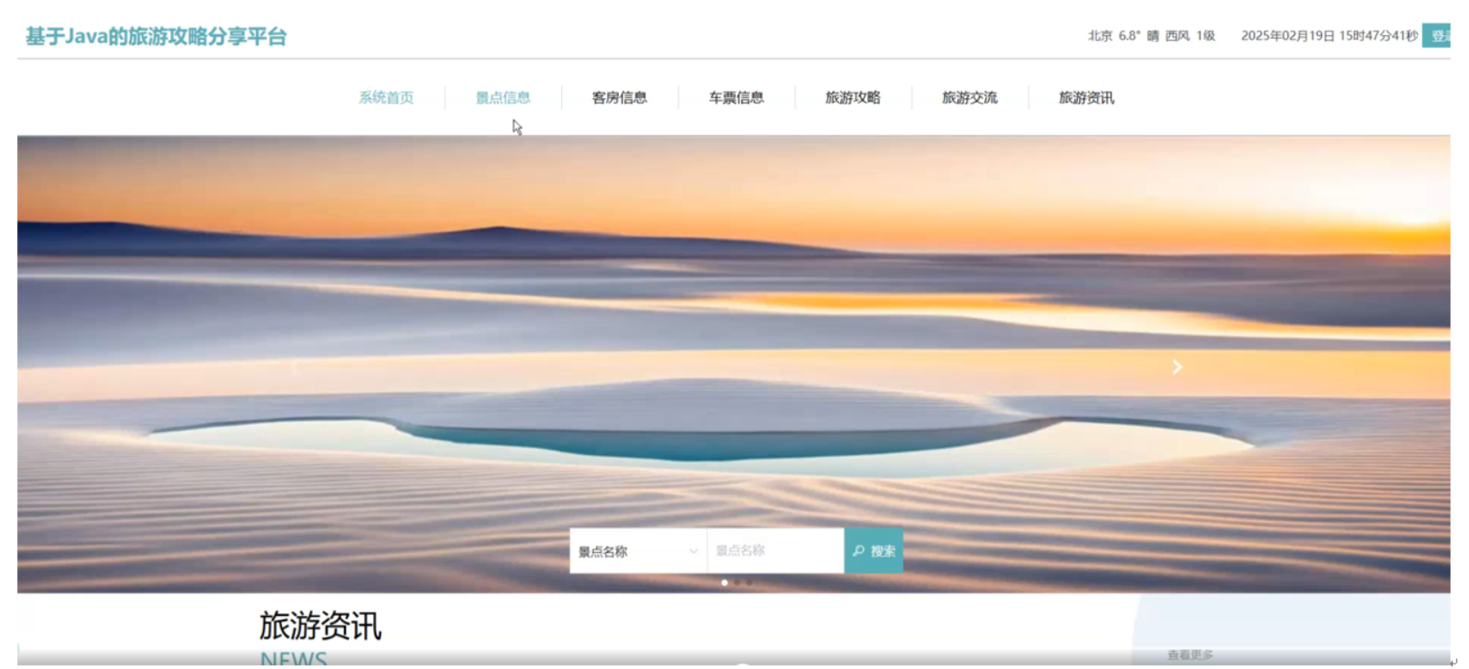随着人们生活水平的提高和旅游观念的转变,旅游已成为一种重要的生活方式。然而,面对众多的旅游目的地和复杂的行程规划,游客往往需要大量的信息支持。为此,我们开发了一款基于Java语言、Spring Boot框架和MySQL数据库的旅游攻略分享平台。该平台旨在为用户提供一个便捷、高效、个性化的旅游信息交流空间。通过Java语言的强大功能和Spring Boot框架的高效开发特性,平台实现了用户注册、登录、攻略发布、评论互动等核心功能,同时利用MySQL数据库确保数据的稳定存储和快速检索。平台界面简洁友好,操作流程直观易懂,无论是资深旅行者还是初次出游的游客,都能轻松上手。通过这款旅游攻略分享平台,我们希望能够为用户提供一个全面、可靠的旅行信息资源库,让每一次旅行都能更加轻松、愉快。