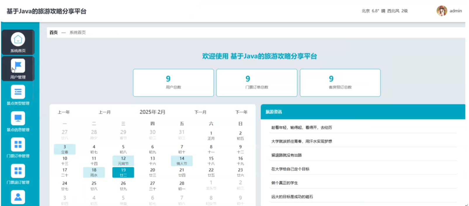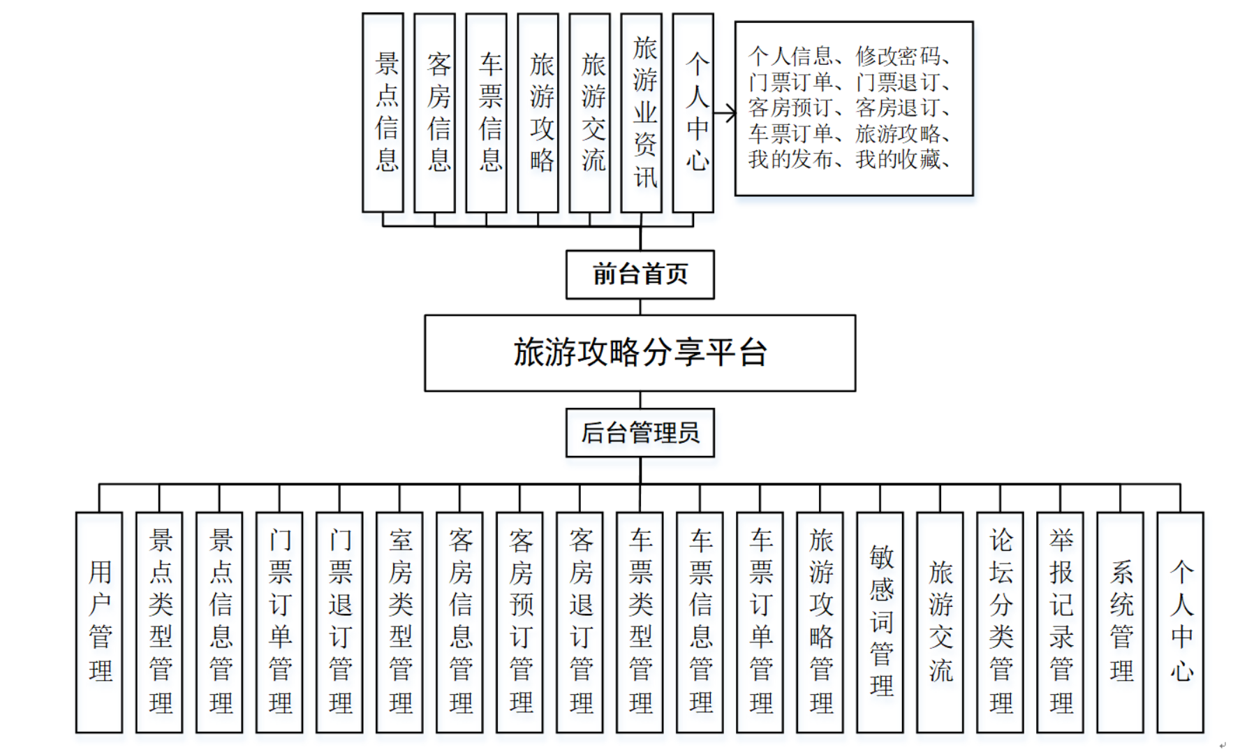 本研究围绕旅游攻略分享平台的功能设计与实现展开,旨在打造一个集用户互动、信息管理与旅游服务于一体的综合性平台。平台的核心功能包括用户管理、景点与客房信息管理、旅游攻略管理、订单处理以及系统维护等。用户管理模块支持用户注册、登录及个人信息管理,确保用户数据的安全性。景点与客房信息管理则涵盖景点类型、客房类型、景点与客房信息的增删改查,为用户提供全面的旅游资源。旅游攻略管理模块支持攻略的发布、审核、推荐与分类,鼓励用户分享旅行经验,同时通过敏感词管理确保内容合规。平台还提供门票、车票、客房的预订与退订管理,满足用户在旅行规划中的多样化需求。旅游交流功能通过论坛分类管理与举报记录管理,营造活跃且健康的社区氛围。系统管理模块则涵盖系统日志、轮播图管理与通知公告发布,提升平台的运营效率。通过这些功能的整合,平台不仅为用户提供了便捷的旅游信息服务,还通过智能推荐和个性化功能提升了用户体验。