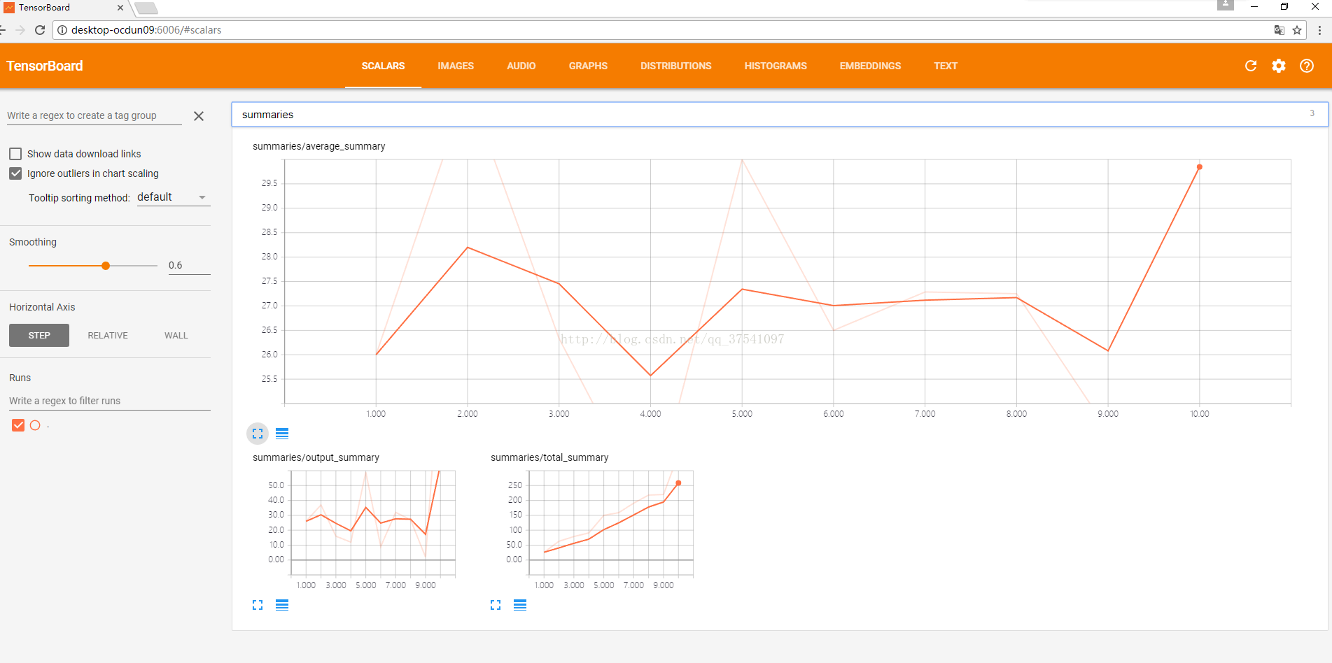 提示:summary界面默认不显示summary图(你可以看到summary最右边标了个3,代表有三张图),点击summary就能看到了(开始我以为自己代码有问题,半天没找到,原来需要点击下)。