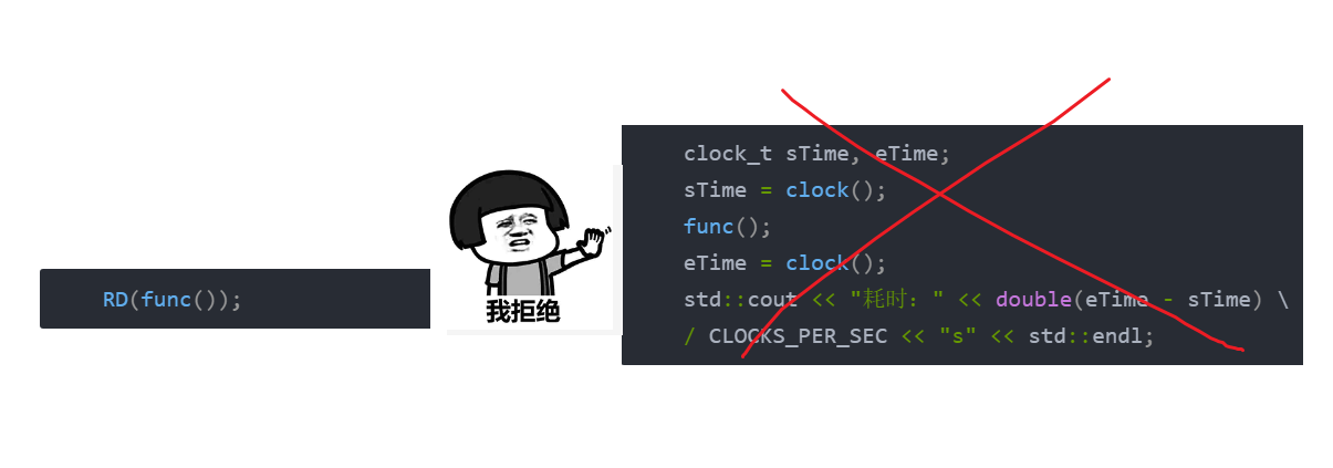 宏定义统计语句执行时间 最近写毕业论文的程序,发现了一种更加优雅的统计时间方法,记录一下chrono主要利用<chrono>这个时间库来实现,里面包含三种时钟:system_clock: 起点是1970-01-01 00:00:00 UTCsteady_clock: 起点是系统启动时间,一般用于得到时间间隔high_resolution_clock:高分辨率的版本本次使用system_clockcodeRD.h#include<iostream>#include <chrono