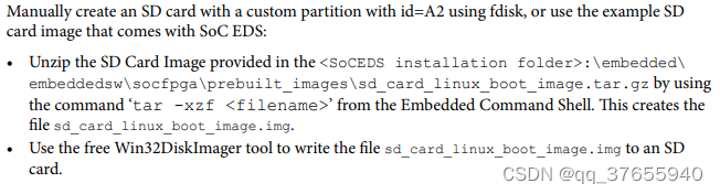 :\embedded\ embeddedsw\socfpga\prebuilt_images\sd_card_linux_boot_image.tar.gz 相应文件添加到Win32DiskImager软件中进行制作SD卡