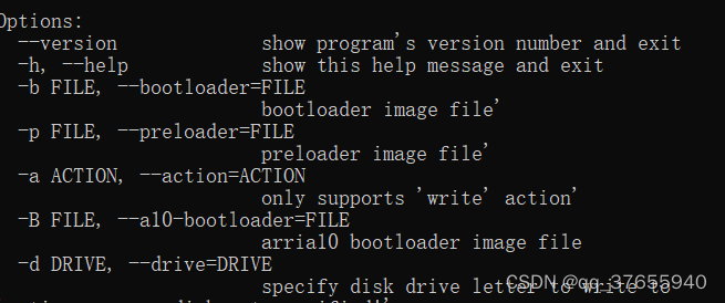 alt-boot-disk-util -a write -p preloader-mkimage.bin -d <sd卡>