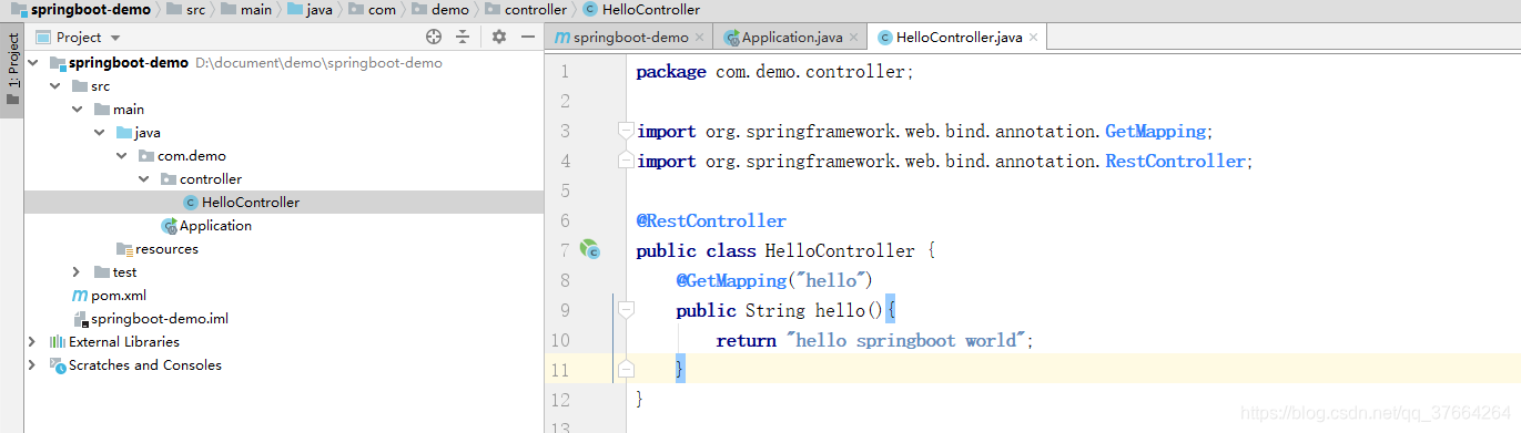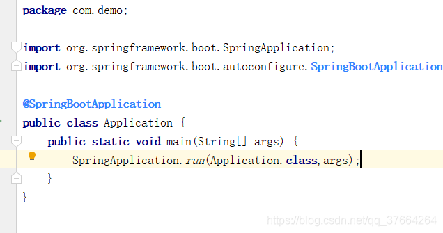 Spring Boot项目通过main函数即可启动,我们需要创建一个启动类: