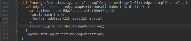 val edgeRDD = EdgeRDD.fromEdges(edges)(classTag[ED], classTag[VD])