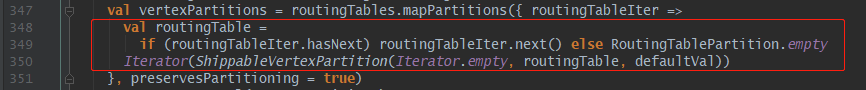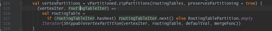 有了RoutingTablePartition后,开始构造ShippableVertexPartition,有两种方式,原理一样,没有顶点数据的使用Iterator.empty代替了