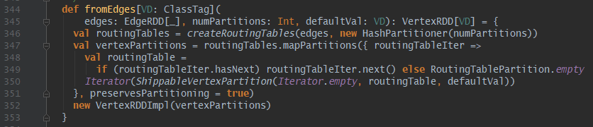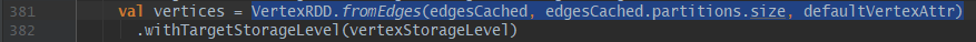 val vertices = VertexRDD.fromEdges(edgesCached, edgesCached.partitions.size, defaultVertexAttr)
