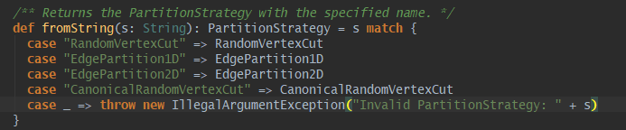 上面得知,边构建过程是保留原始RDD[Edge]的分区策略,如果要更改边分区,不是点,GraphX自身提供了四种边分区策略,如下,也可以自定义实现分区器。