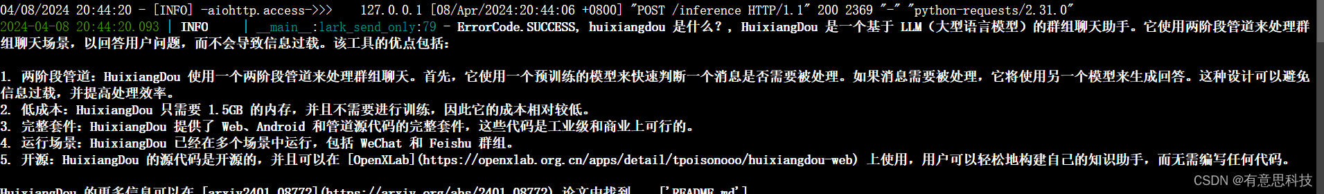 python3 -m huixiangdou.main --standalone