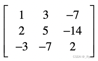 x = mat([[1,3,-7],[2,5,-14],[-3,-7,2]])