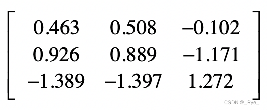 和 sklearn 中的标准化函数 scale 有所不同,numpy 中的协方差函数 cov 除以的是 (m-1),而不是 m。最终完整的协方差矩阵是: