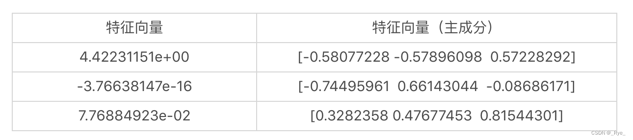 需要注意,Python 代码输出的特征向量是列向量,而我表格中列出的是行向量。