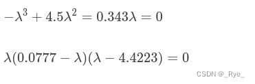 所以 λ 有 3 个近似解,分别是 0、0.0777 和 4.4223。