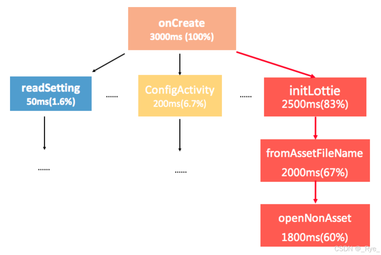 从图上看,Activity 的 onCreate 函数耗时达到 3 秒,而其中 Lottie 动画中openNonAsset函数耗时竟然将近 2 秒。尽管是读取一个 30KB 的资源文件,但是它的耗时真的会有那么长吗?