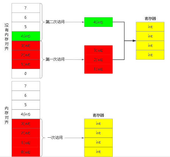 C/C++ 内存对齐 什么是内存对齐为了提高程序的性能,数据结构应该尽可能地在自然边界上对齐。为什么需要内存对齐1、便于移植:不是所有的硬件平台都能访问任意地址上的任意数据的;某些硬件平台只能在某些地址处取某些特定类型的数据,否则抛出硬件异常。2、提高处理器访问速度:对于未对齐的内存,处理器可能需要访问两次内存才能将数据完全读出,而对于对齐的内存,处理器只需要一次即可。对于原因2具体解释一下:尽管内存是以字节为单位,但是大部分CPU并不是按字节块来存取内存的。它一般会以2的n次方个字节为单位来存取内存,将上述这些存取