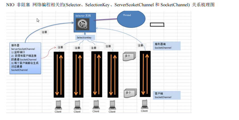 2) Selector 对应一个线程, 一个线程对应多个channel(连接)
