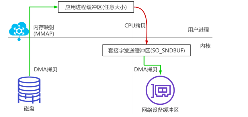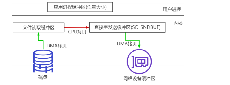 统支持的情况下,通过该方法传输数据并不需要将源数据从内核态拷贝到用户态,再从用户