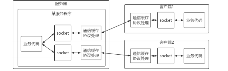 Socket 是应用层与 TCP/IP 协议族通信的中间软件抽象层,它是一组接口,一般由操作系统提供。在设计模式中,Socket 其实就是一个门面模式,它把复杂的 TCP/IP 协议处理和通信缓存管理等等都隐藏在Socket 接口后面,对用户来说,使用一组简单的接口就能进行网络应用编程,让Socket 去组织数据,以符合指定的协议。主机 A 的应用程序要能和主机 B 的应用程序通信,必须通过 Socket 建立连接。客户端连接上一个服务端,就会在客户端中产生一个 socket 接口实例,服务端每接受一个客户端连接,就会产生一个 socket 接口实例和客户端的 socket 进行通信,有多个客户端连接自然就有多个 socket 接口实例。