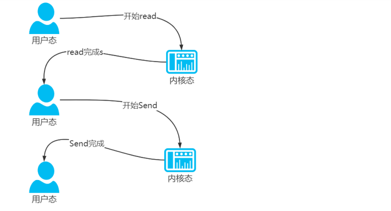 同时,read 和 send 都属于系统调用,每次调用都牵涉到两次上下文切换:
