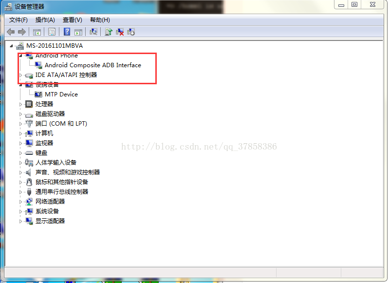 I、 在设备管理器中,找到Android Composite ADB Interface 然后双击点开。