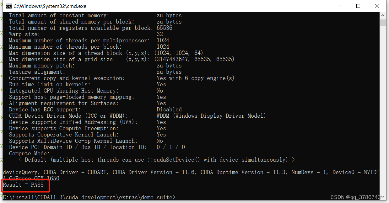 然后命令行中继续输入deviceQuery.exe,显示如下。