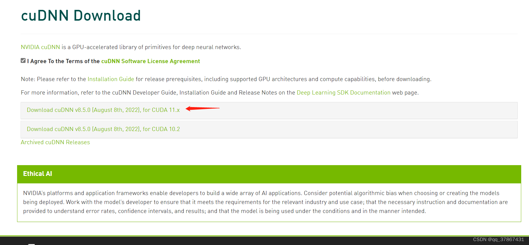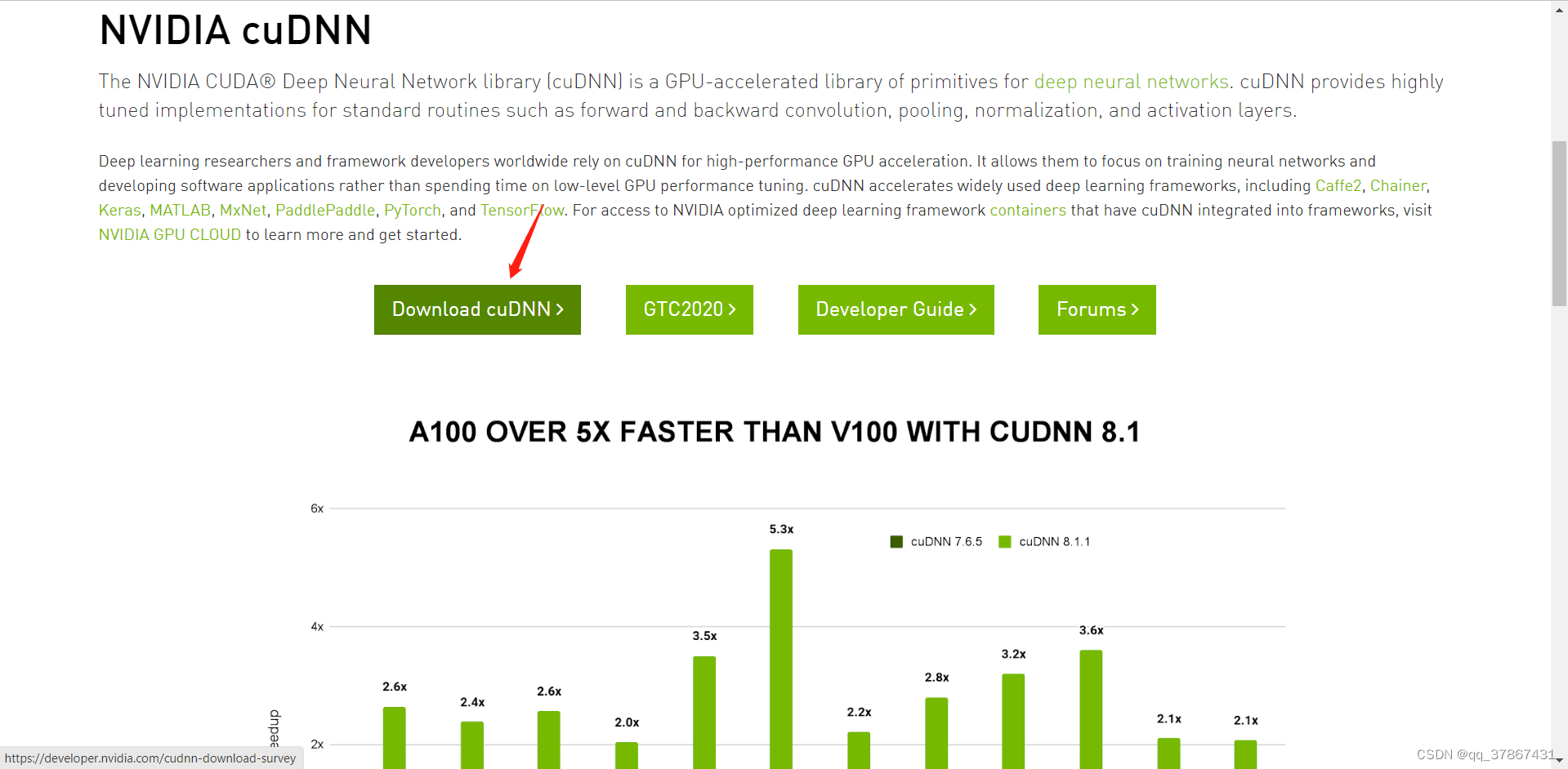 根据你下载的cuda的版本选择对应的cudann的版本,官网地址:CUDA Deep Neural Network (cuDNN) | NVIDIA Developer