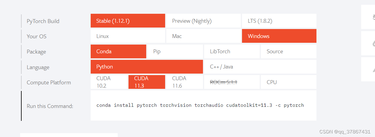 我的电脑上面是最高支持cuda11.6,我可以下载11.6及其以下版本的cuda,我下载的11.3版本的。