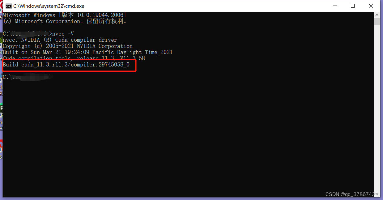添加完成后用win+r快捷键输入cmd打开终端,输入nvcc -V,如下图所示表示安装cuda成功。