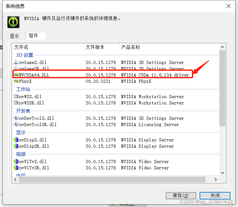 然后在系统信息中点击组件,便可以查看3D设置中的第三条,也就是本电脑最高支持的cuda版本。
