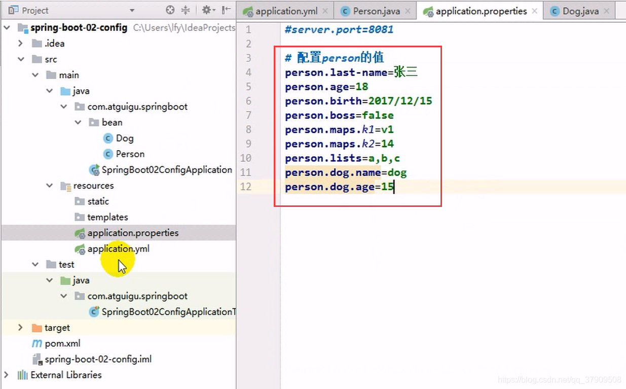 三、@Value获取值和@ConfigurationProperties获取值比较