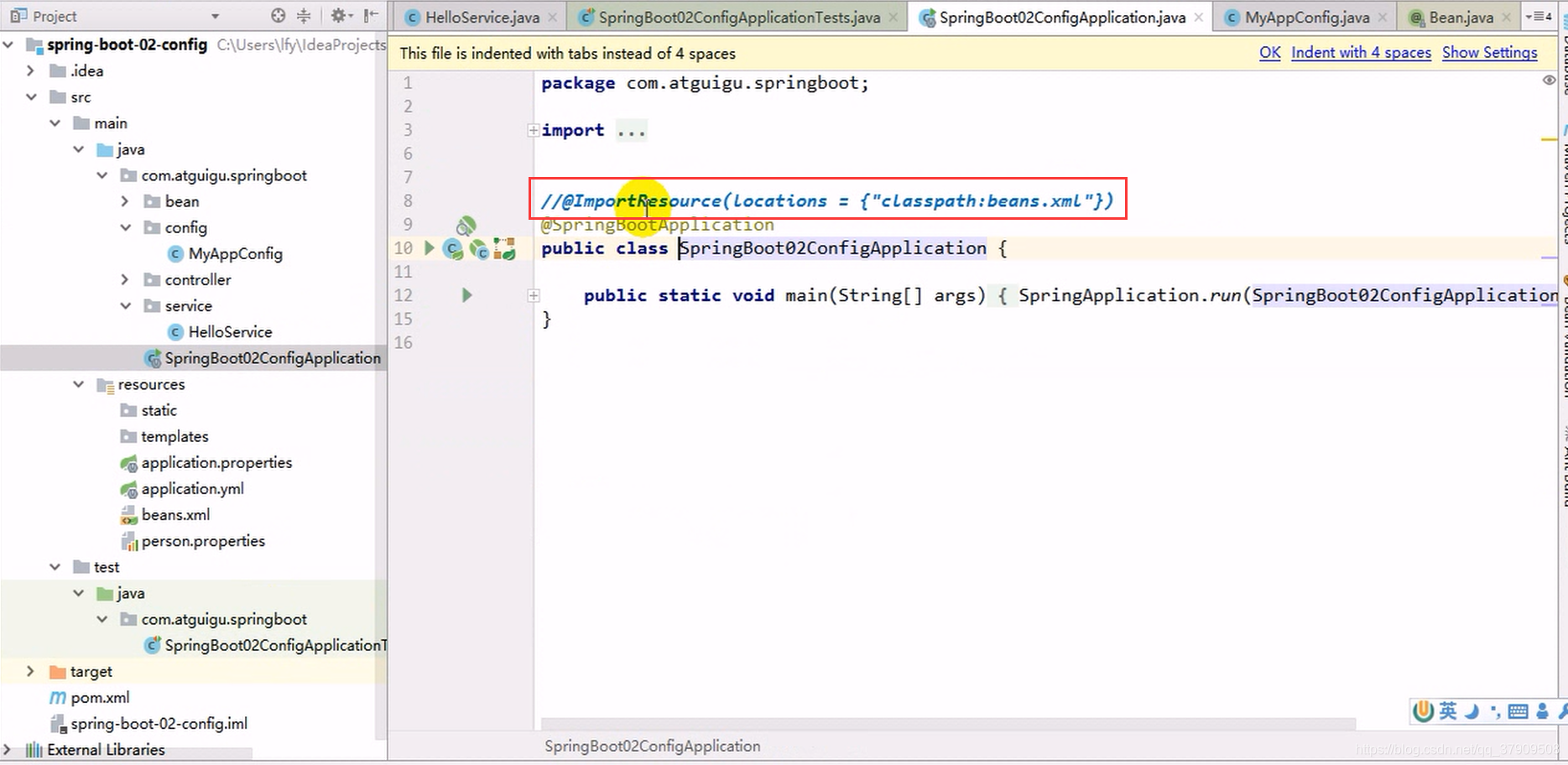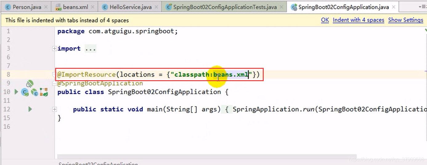 导入Spring的配置文件,让配置文件里面的内容生效。