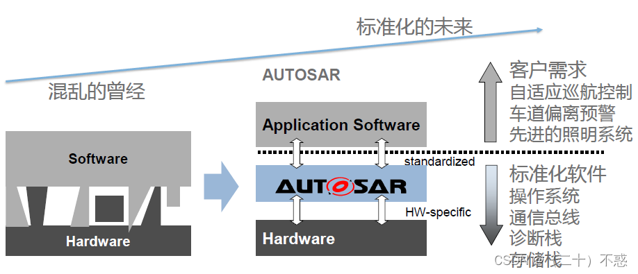 在我们现在的汽车行业里面,汽车电子的发展过程中,我们发现有一些新的趋势汽车电子系统的复杂性不断增长。我们现在可以看到车辆有越来越多的功能,那么这些功能呢,也在往这个控制器上进行集中,比如说我们现在看到有很多域控制器。那么域控制器本身呢,它可能负责很多的功能,那么这就导致了我们这个电子系统的复杂性不断的增长。同时,软件代码的数量也是急速的上升。另外一方面的原因是在这个汽车电子发展过程中,我们发现整车寿命往往长于ECU的生命周期,那也就意味着在整车的生命周期里面,可能需要对ECU的软件进行开发和升级。