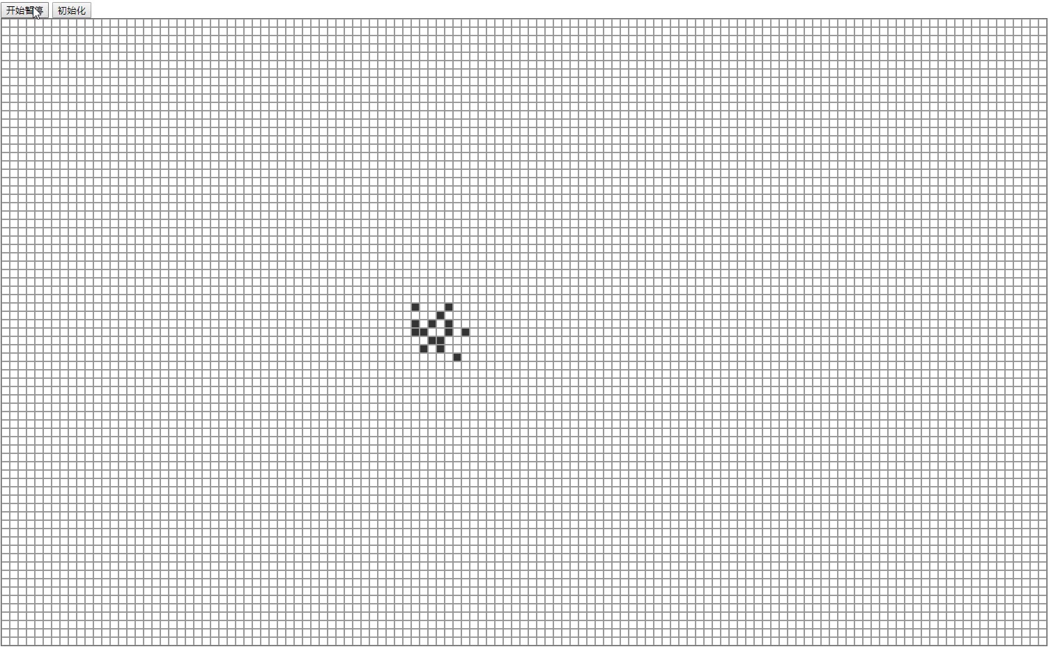 html记录之康威生命游戏(二) 格子大小最好自己定,修改容器content大小、横向纵向格子数sizeLeft和sizeTop,自己看起来舒服最重要。尝试:将setInterval定时循环的方式改完setInterval+普通循环。修改了页面风格,并将完全的计时器改为计时器为存活代数,while循环做存活判断。不过div的数量多了就卡,这个好像html就这样了,没什么办法。