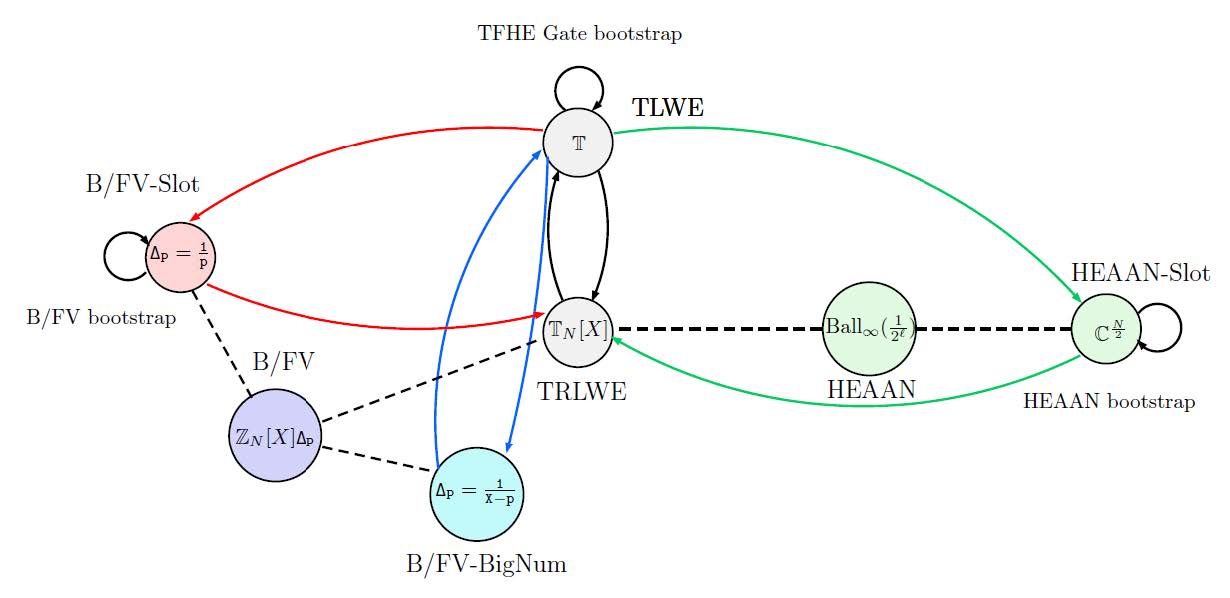 全同态加密众所周知,对同态加密的数据进行计算再解密,所得到的的结果与解密再计算是相同的。那么,同态加密中对计算(即同态评估)会有什么样的限制呢?目前已知可以进行的同态加密计算类型大致有三种:整数计算近似计算(定点数计算)二进制计算(电路计算)整数计算给定两个明文 m1,m2∈Zm_1, m_2 \in \mathbb{Z}m1,m2∈Z 的加密,可以计算:整数计算是可以使用 SIMD 进行加速的,给定两个明文 m1,m2∈Zm_1, m_2 \in \mathbb{Z}m1,m2