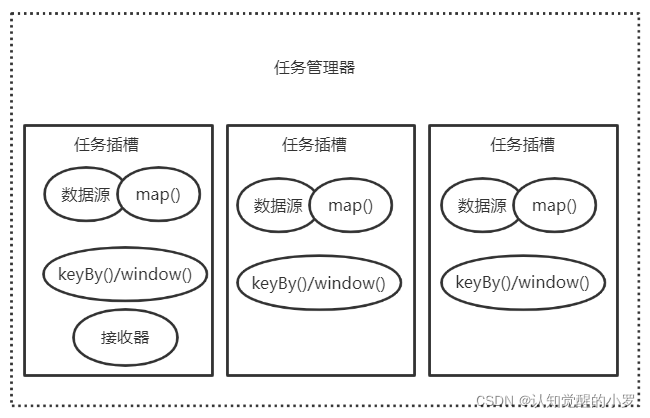 (1)资源管理器(Resource Manager):管理任务插槽(Task Slot),负责Flink集群中的资源取消和分配。任务插槽是Flink集群中资源调度的基本单位。不同部署环境Flink实现了相对应的资源管理器。
