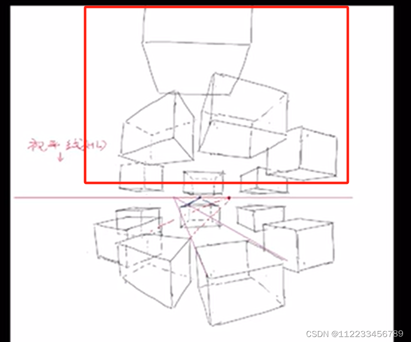 下图纵深走向交汇点,所在的水平线,叫做视平线