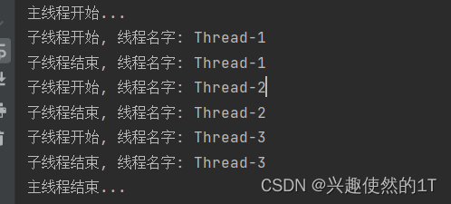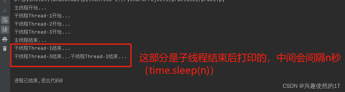 print(f'子线程结束, 线程名字: {current_thread().name}')