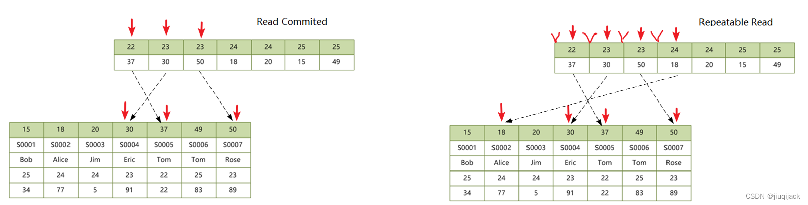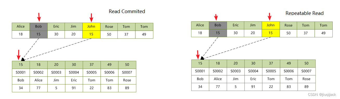 - 二级非唯一索引,查询未命中:UPDATE students SET score = 100 WHERE name = 'John';