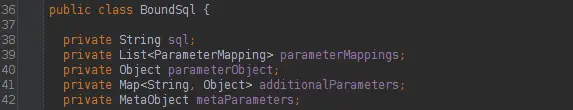 BoundSql类,封装mybatis最终产生sql的类,包括sql语句,参数,参数源数据等参数: